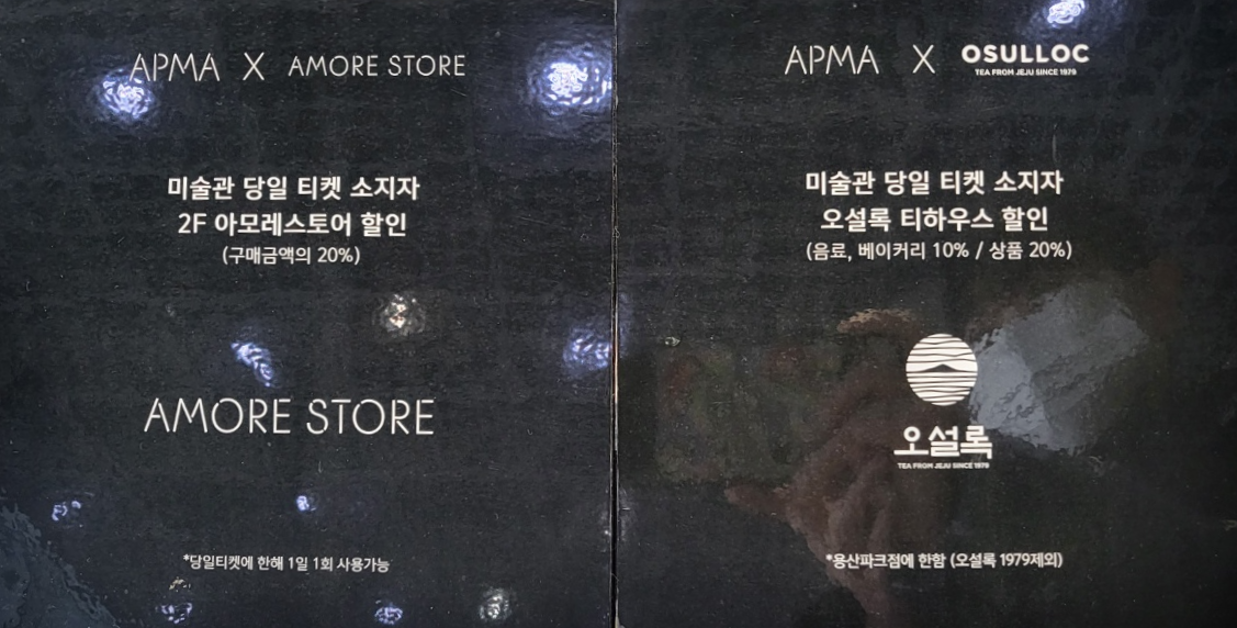 그리고 미술관 당일 티켓 소지자는 아모레스토어와 오설록 티하우스 할인된다는 사실!