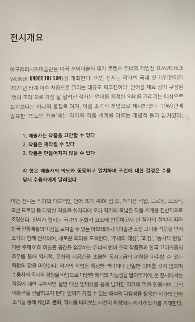 로렌스위너 전시는 처음이였는데 흥미롭게 잘 관람하고 나왔어요.
