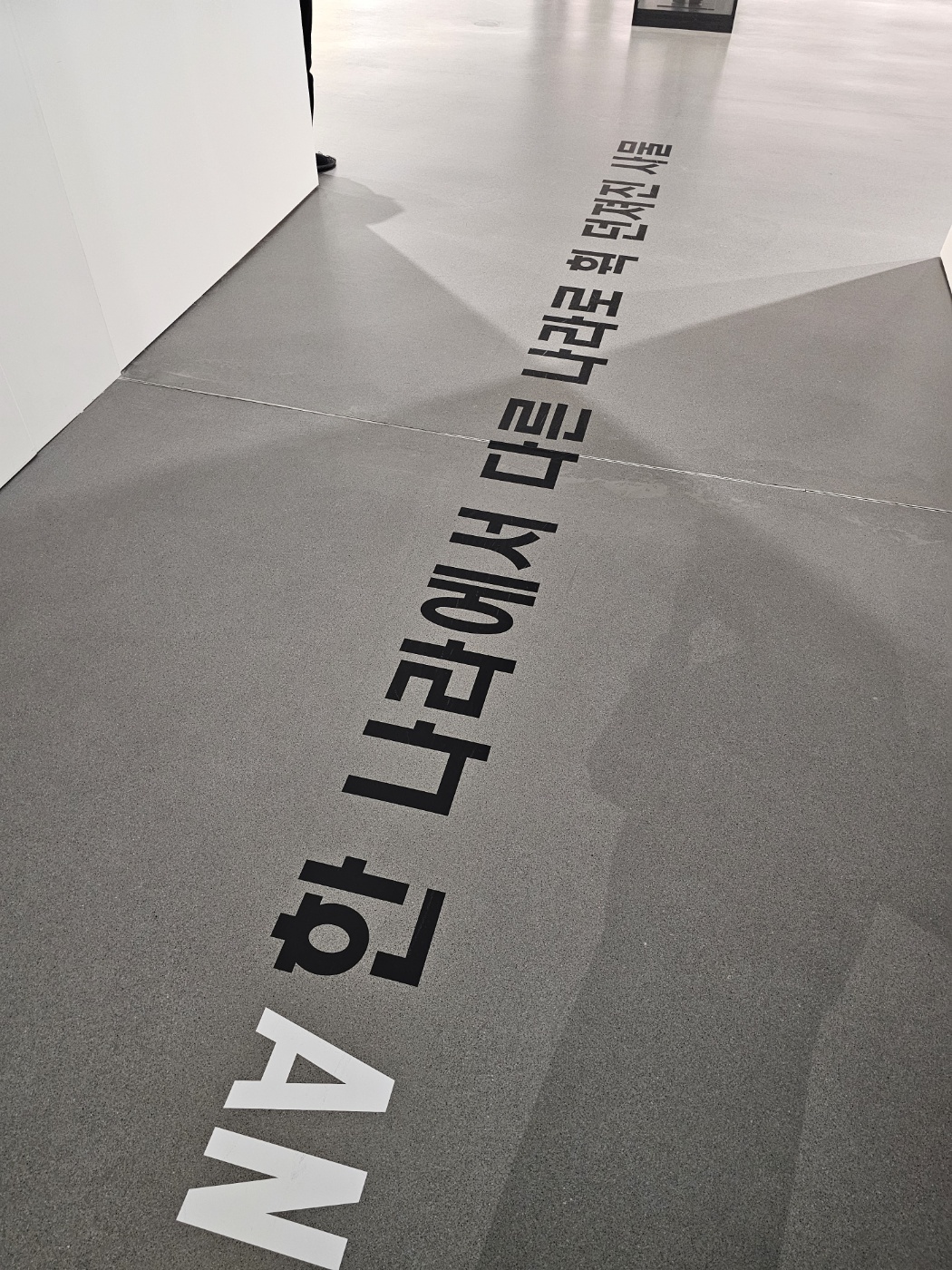 전시장 바닥에도 작가의 텍스트가 적혀져 있어서 흥미로워요.