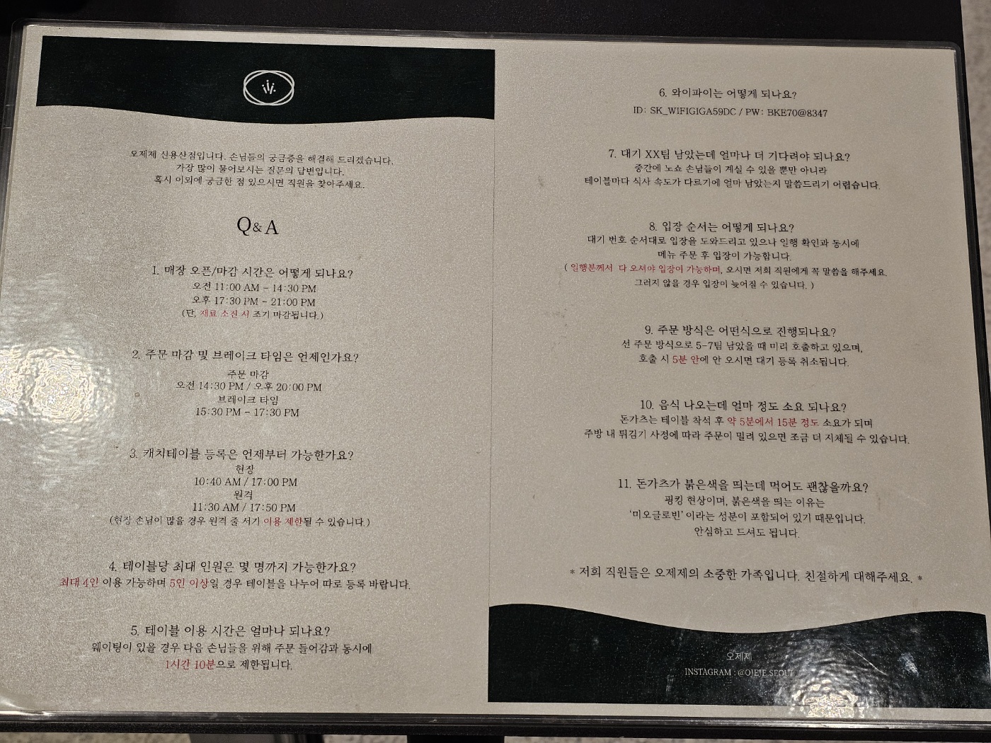 ♥ 영업일 / 시간 : 월 - 일 11:00 - 21:00, 브레이크타임 : 15:30 - 17:30,