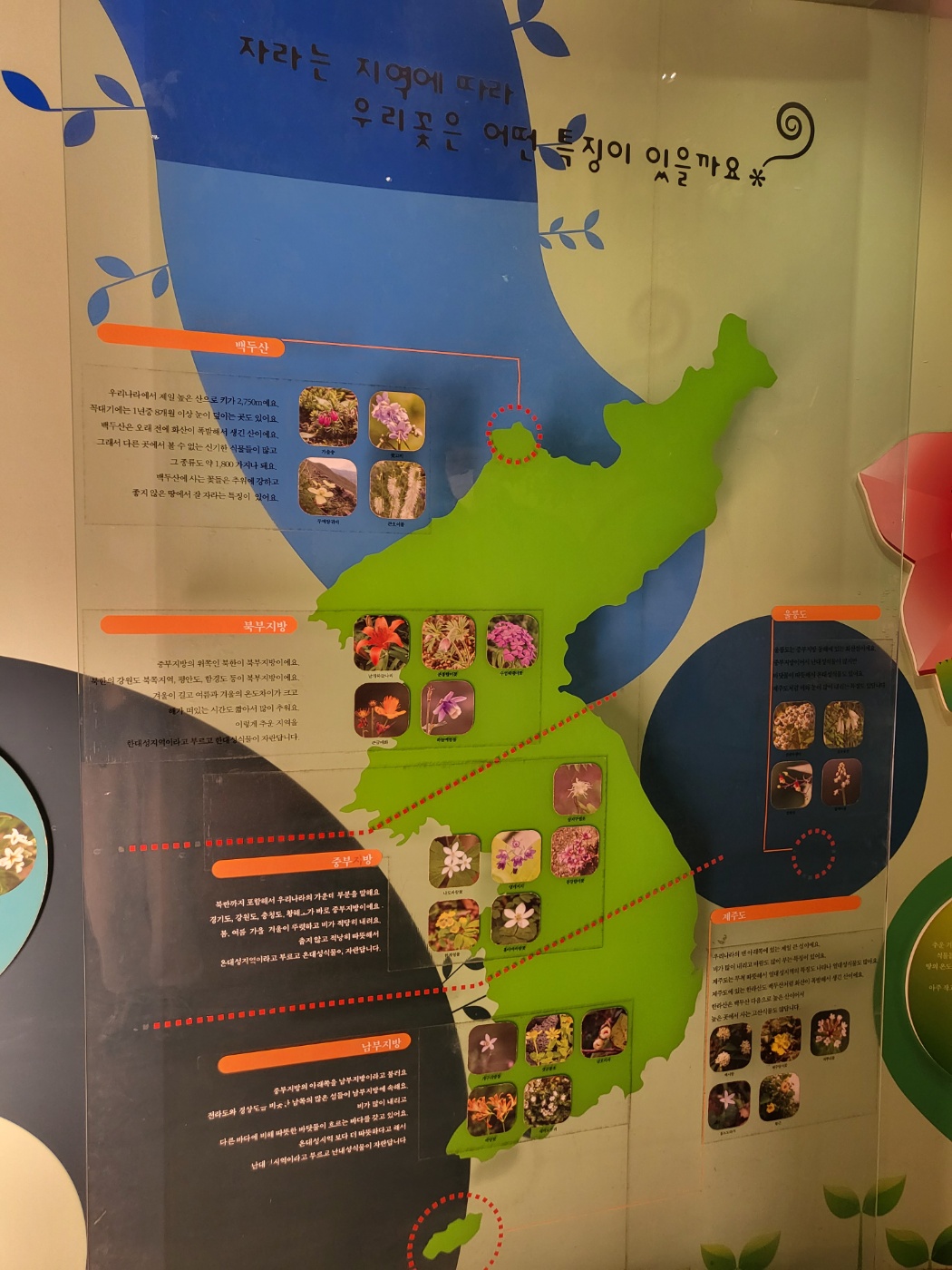 지역에 따른 꽃을 종류로 나누고 설명이 적혀있어서 아이들이 공부하기에 좋아보였어요.