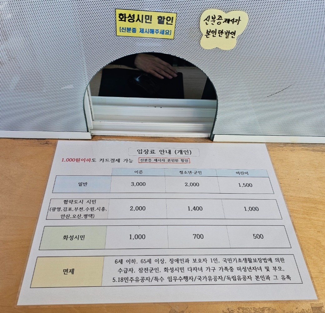 화성시민은 할인이 가능한데 신분증 꼭 제시해야해요.