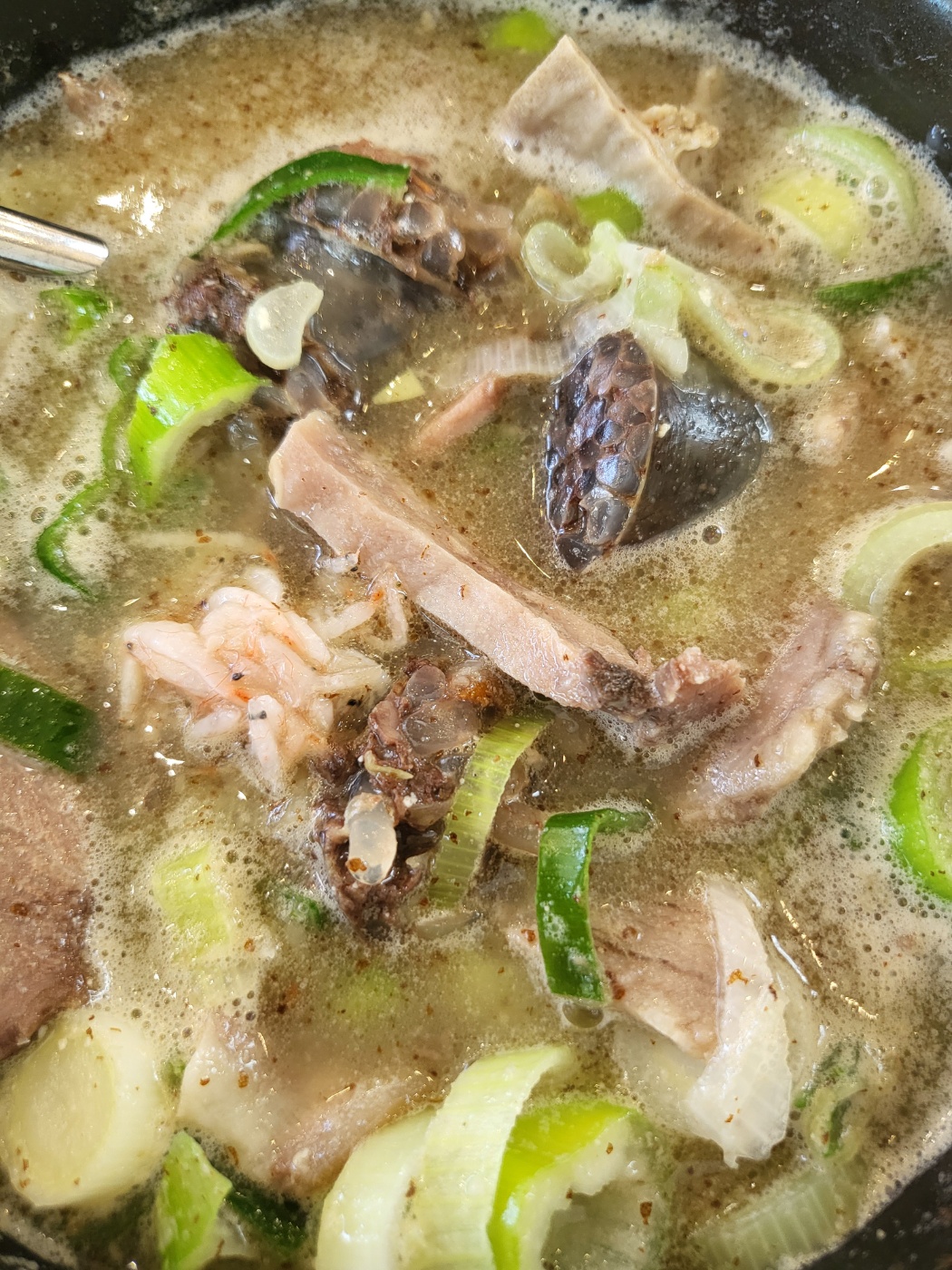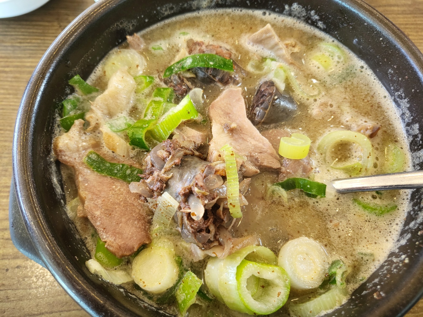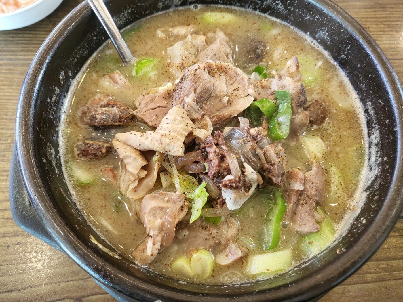 제가 주문한 순한맛 순대국밥은 맑은 국물이에요.