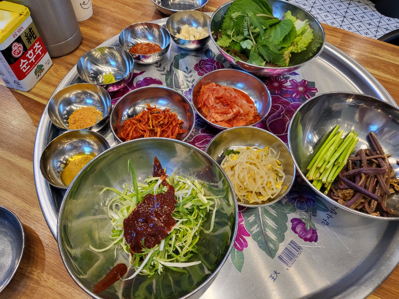 파무침, 야채, 김치 등등 나오는데,