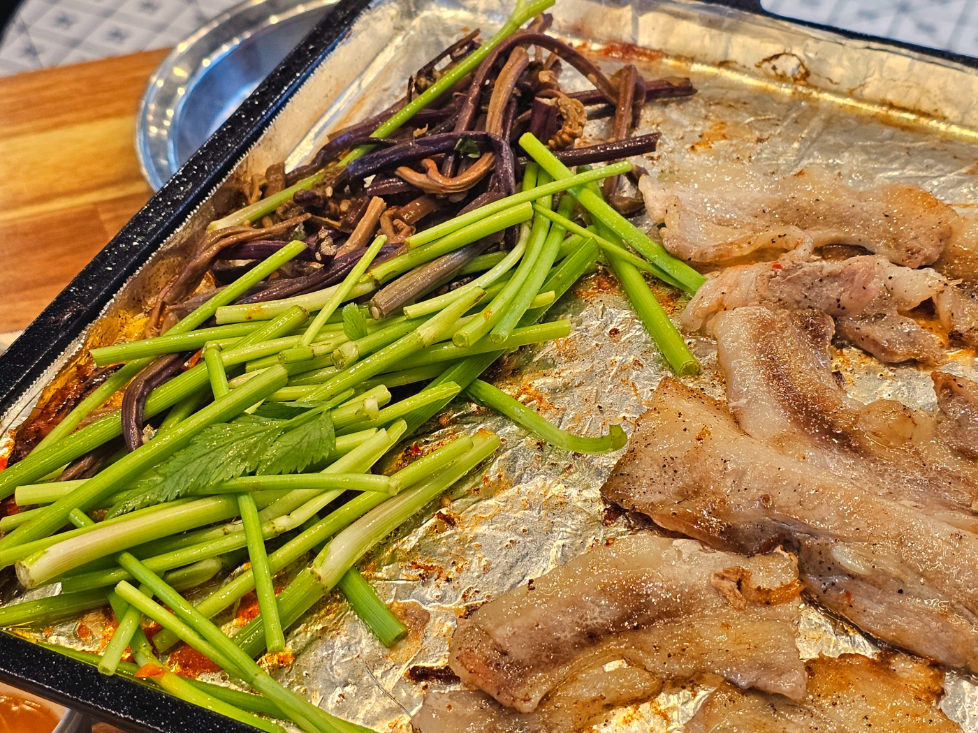 그리고 옆에는 미나리와 고사리를 올렸어요.