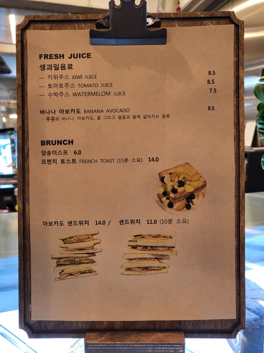 메뉴판을 보니 음료 메뉴도 많았고 스프와 토스트 그리고 샌드위치 메뉴까지 있었어요.