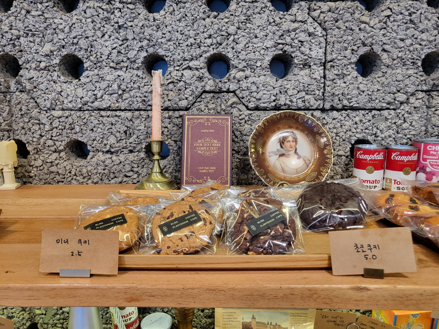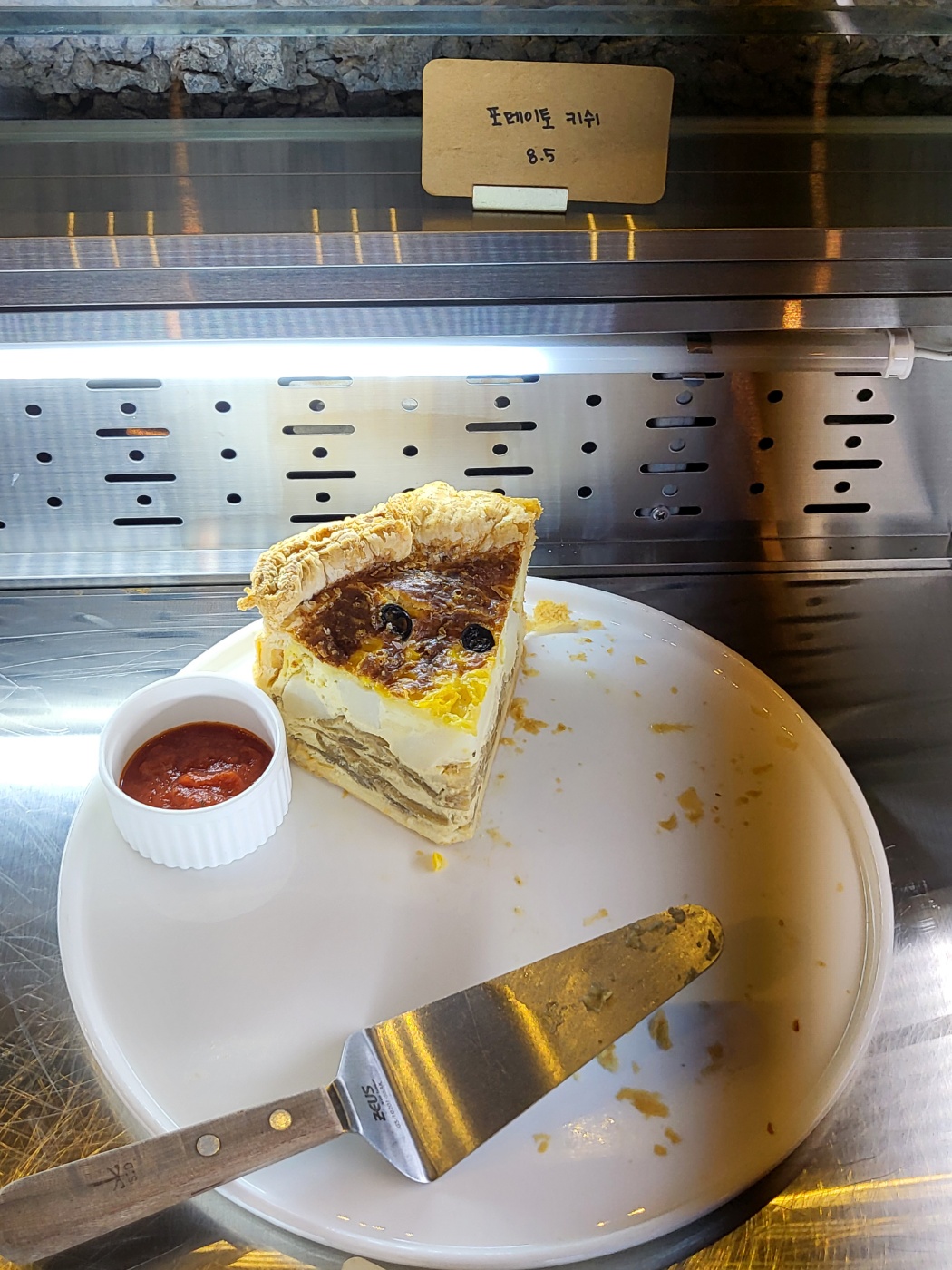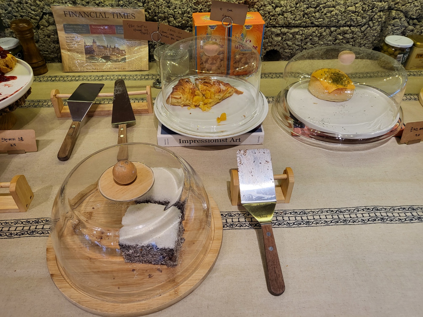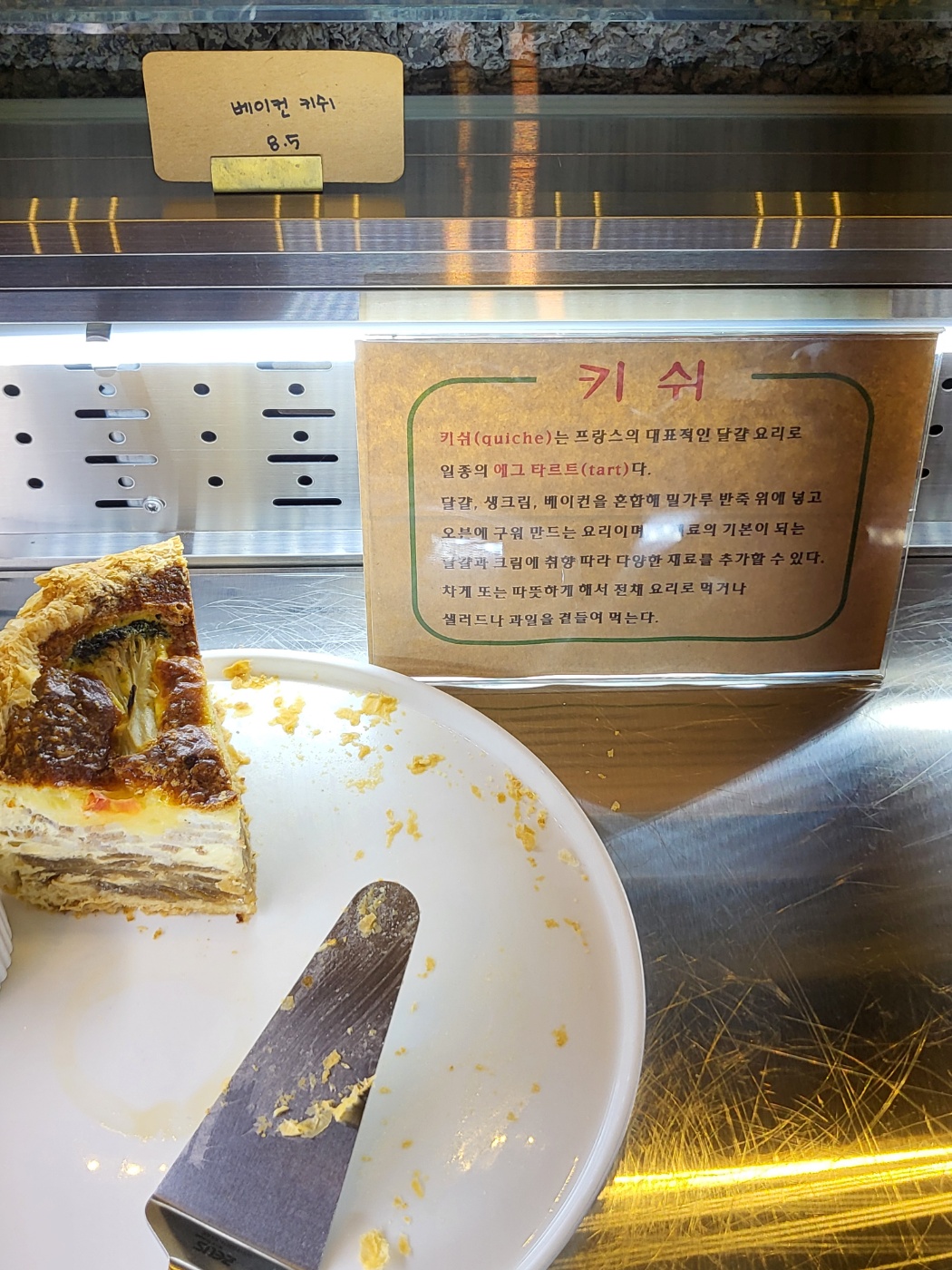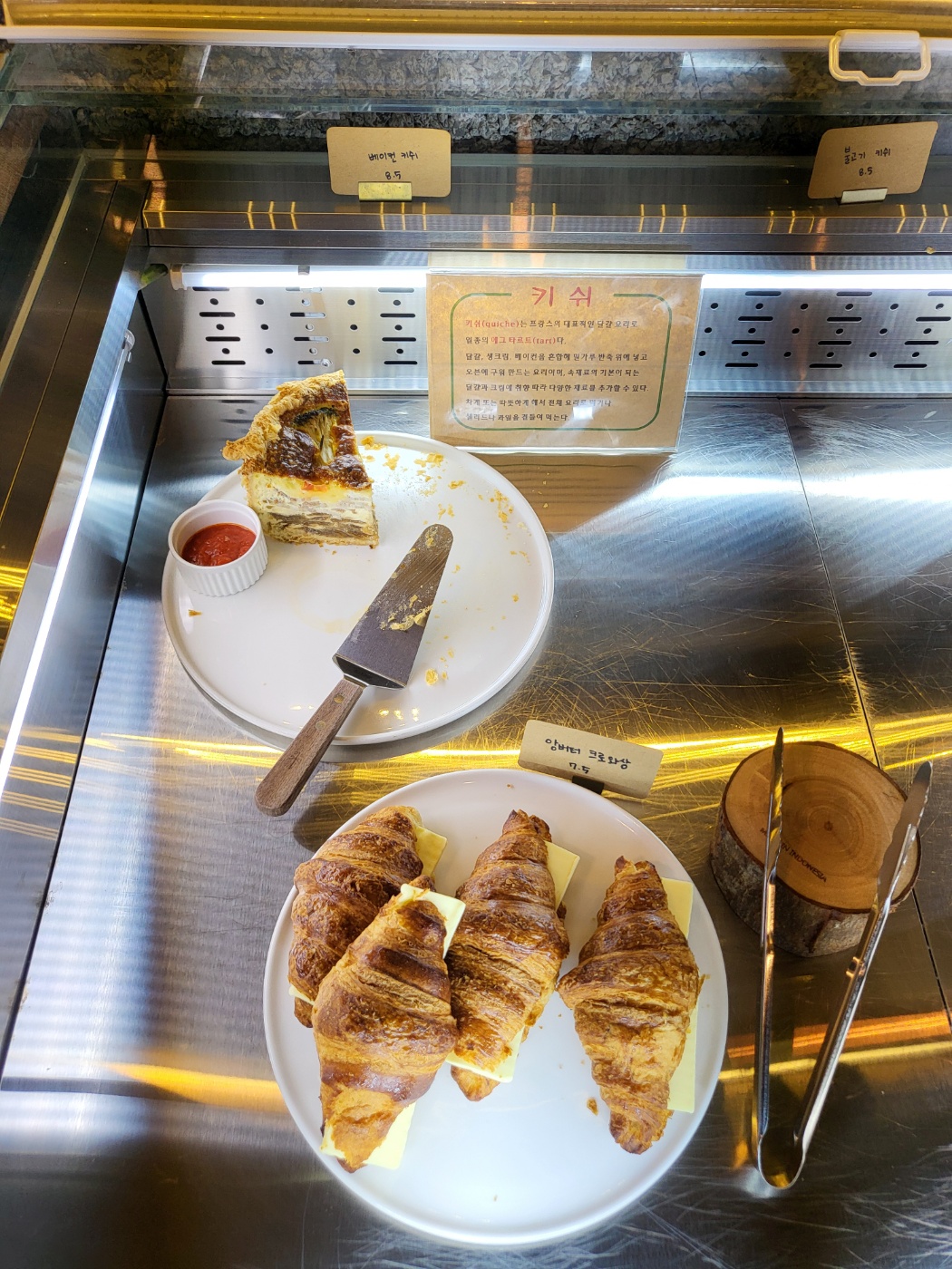 카운터 쇼케이스 안에는 케이크 몇 종류와 베이글과 키쉬 등등이 있었습니다.