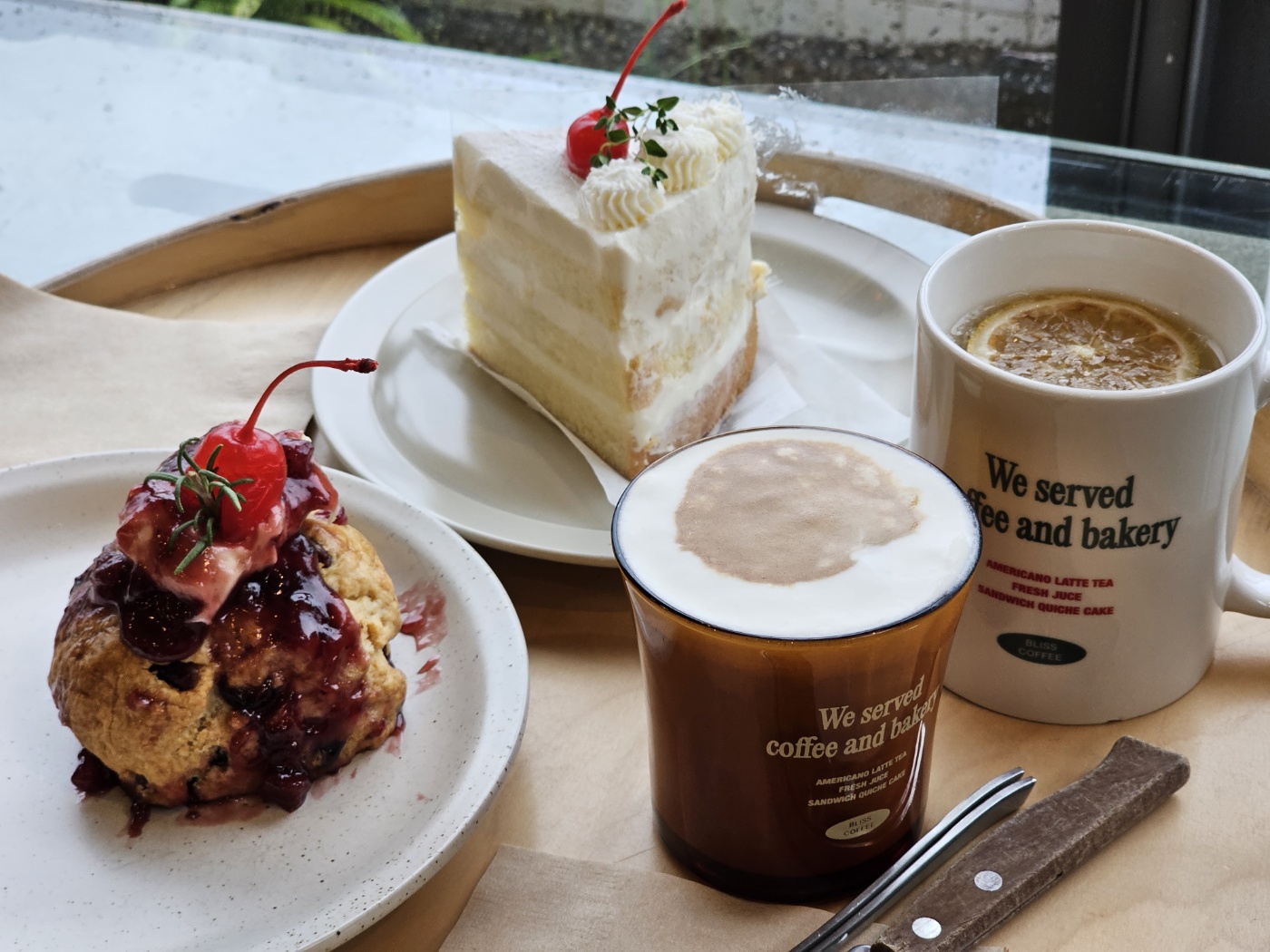 저희는 스콘이랑 생크림 케이크 그리고 따뜻한 블리스페너와 레몬차를 주문했어요.