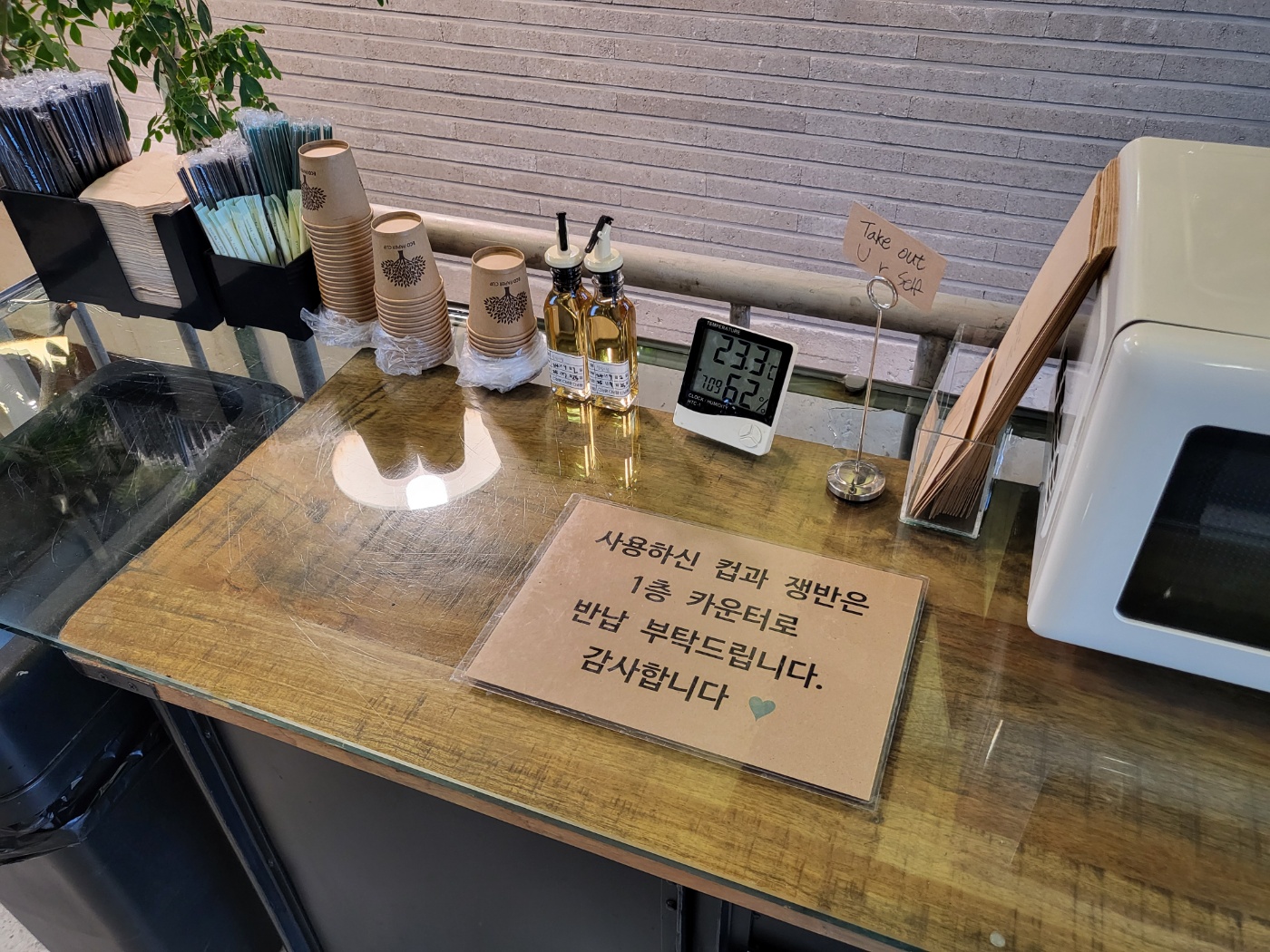 사용하신 컵과 쟁반은 1층 카운터로 반납해야합니다.
