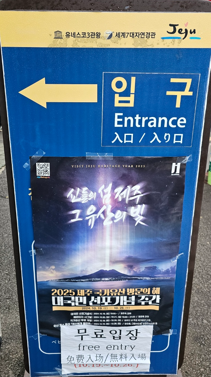 어제 성산일출봉 때와 마찬가지로 제주 국가유산 방문의 해 기념 주간으로 무료 입장했습니다.