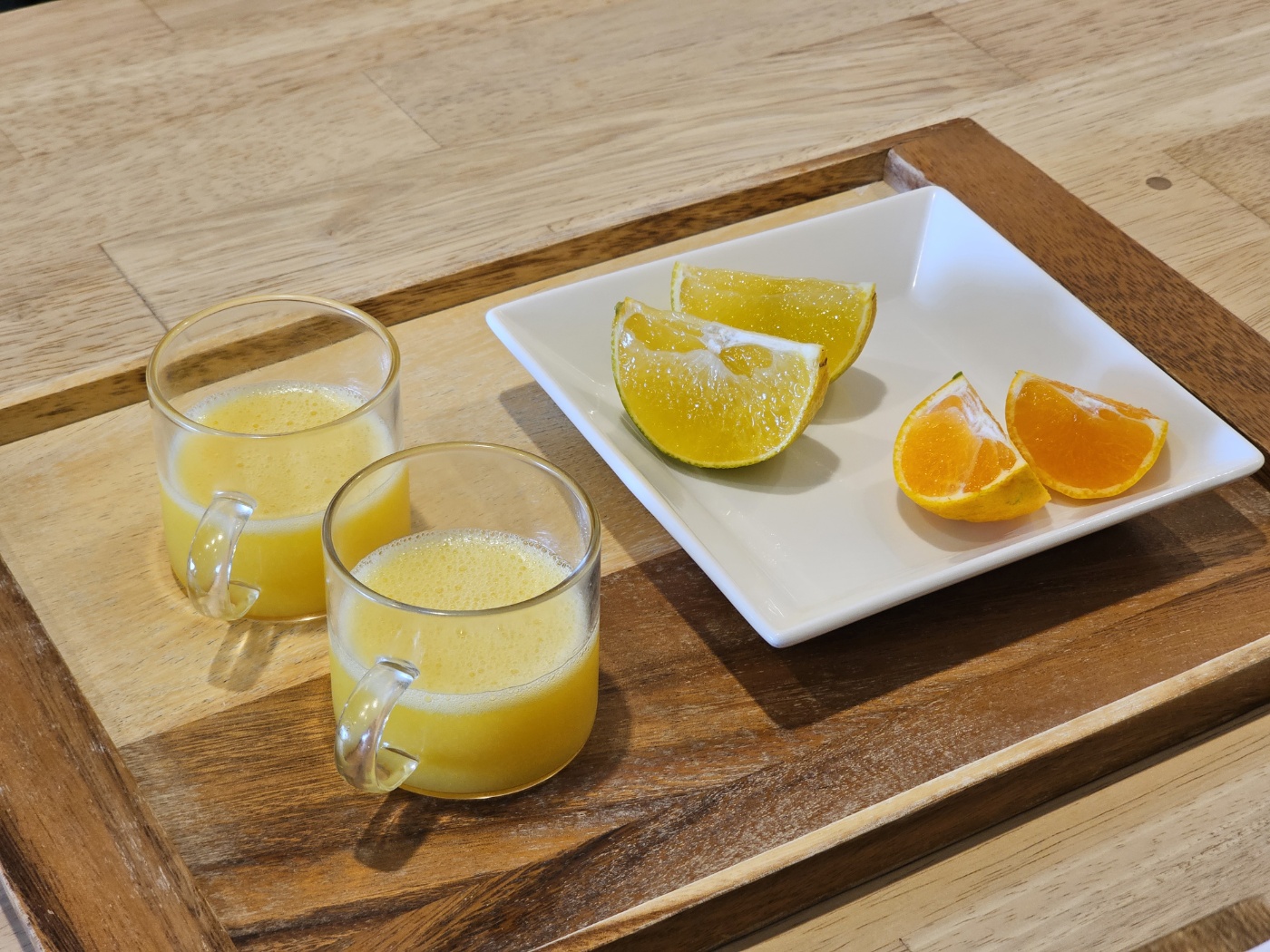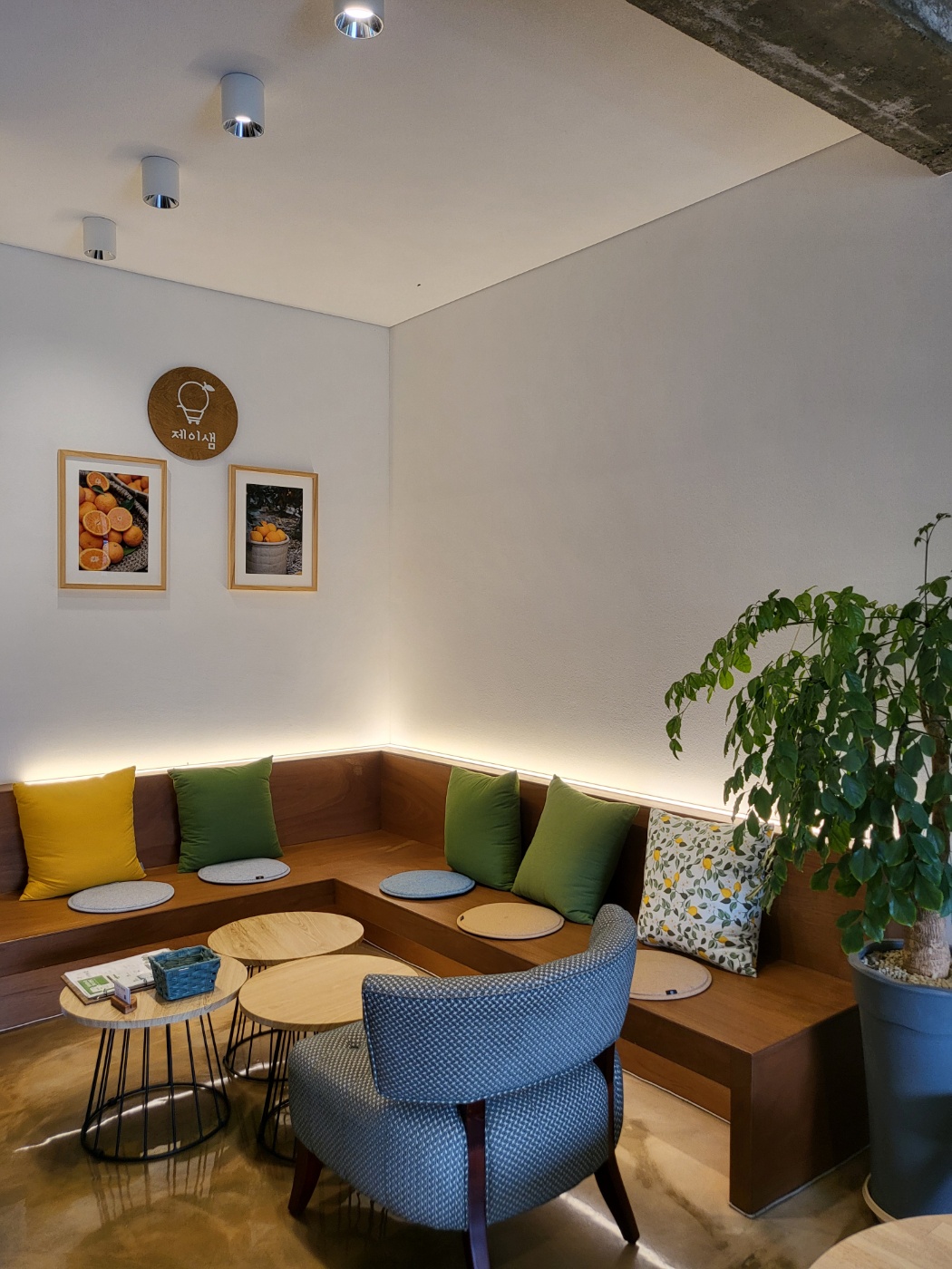 그리고 잠깐 앉아 있으면 감귤즙과 시식용 귤을 내주시는데,