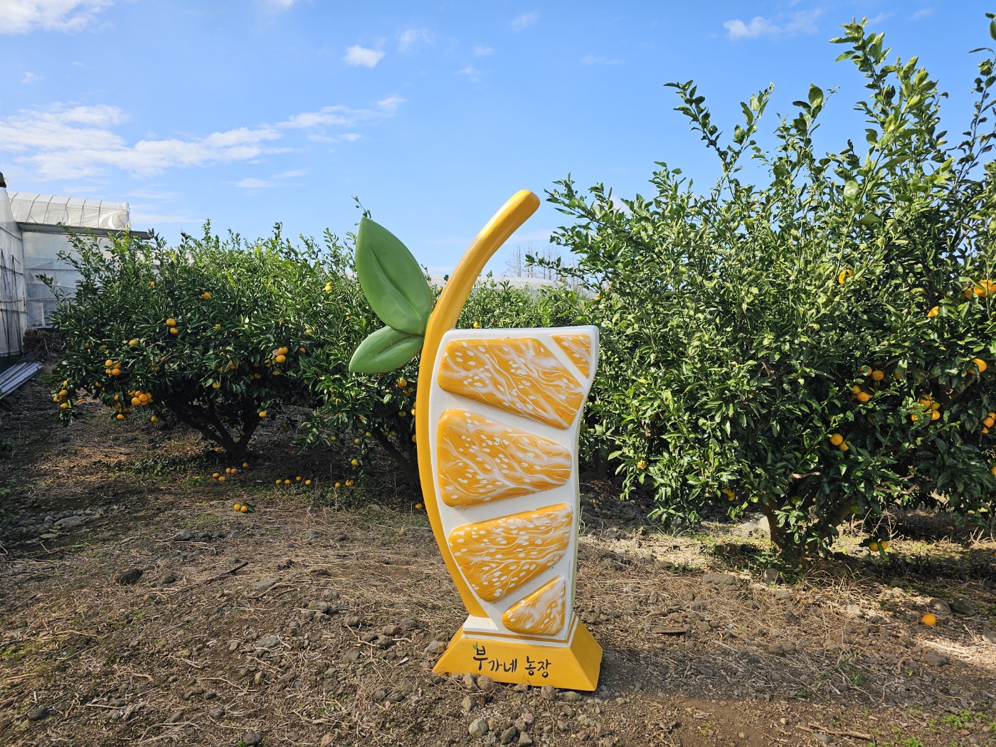 택배보낼 귤들을 주소 다 적고 난 뒤 사장님을 따라 귤 농장으로 이동했어요.