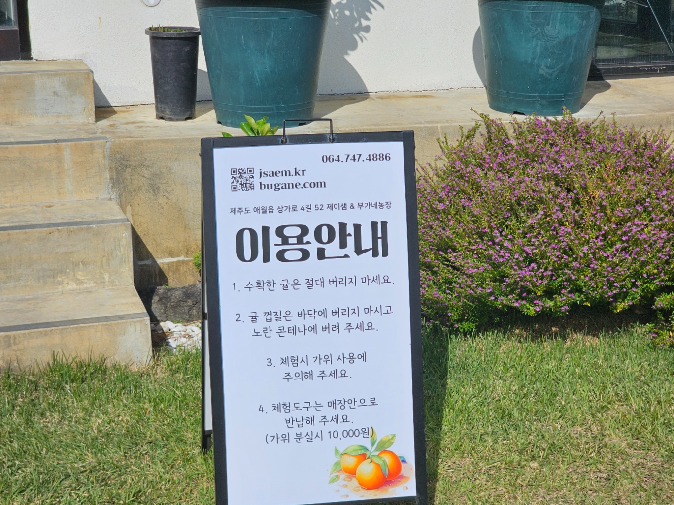 귤 농장에 도착하고 사장님께서 귤 수확하는 방법을 알려주셨어요.