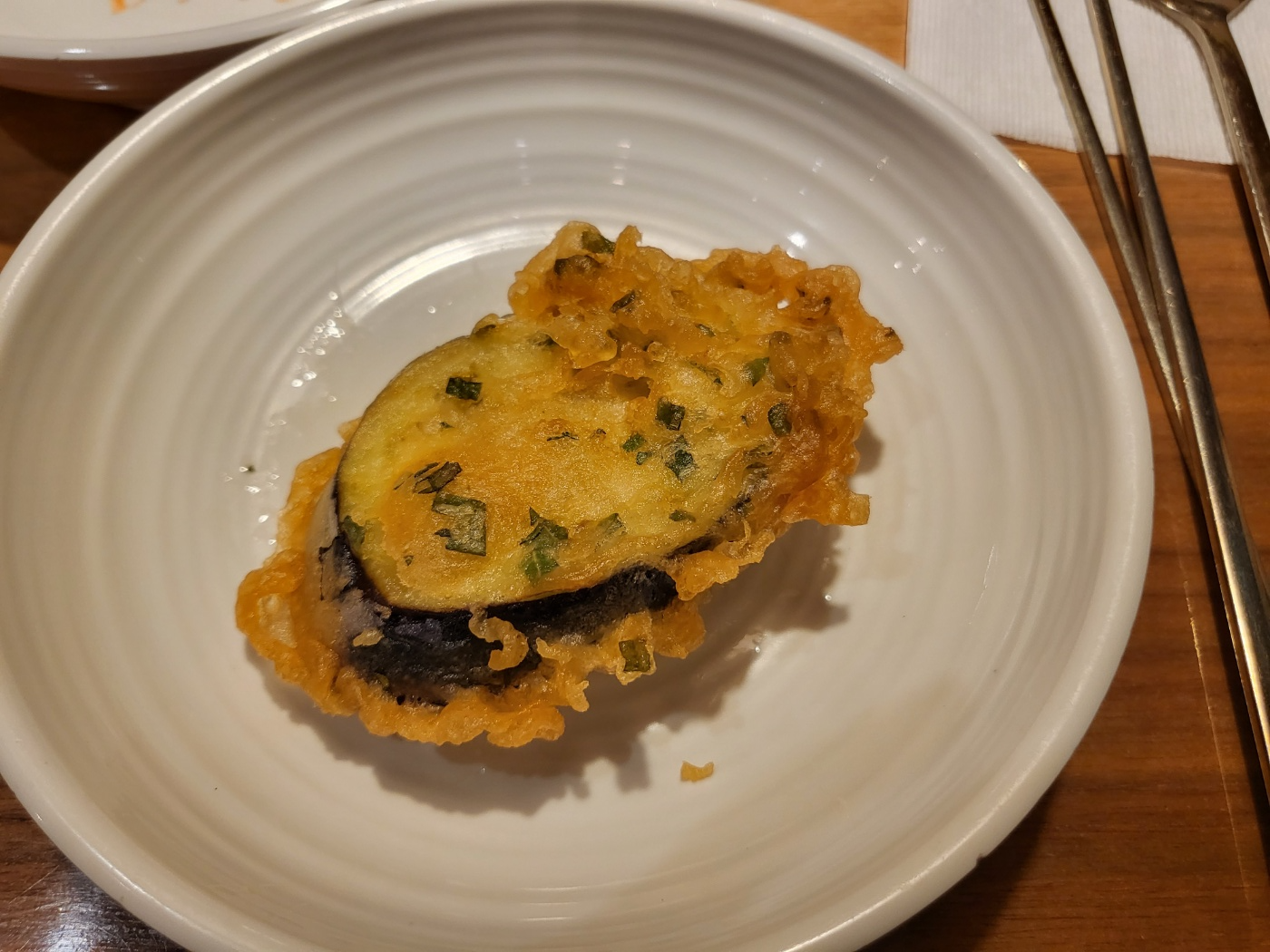 먹고 있는데 갓 튀긴 가지튀김까지 나왔어요.