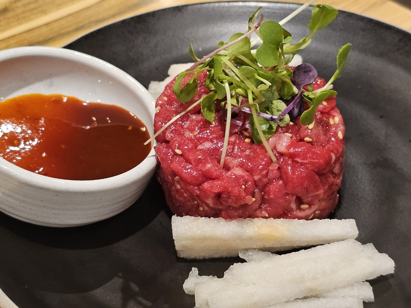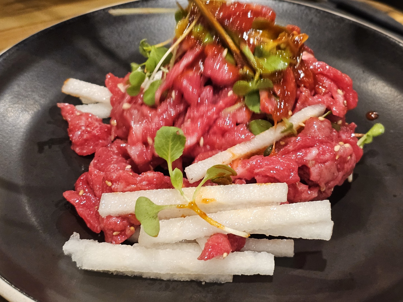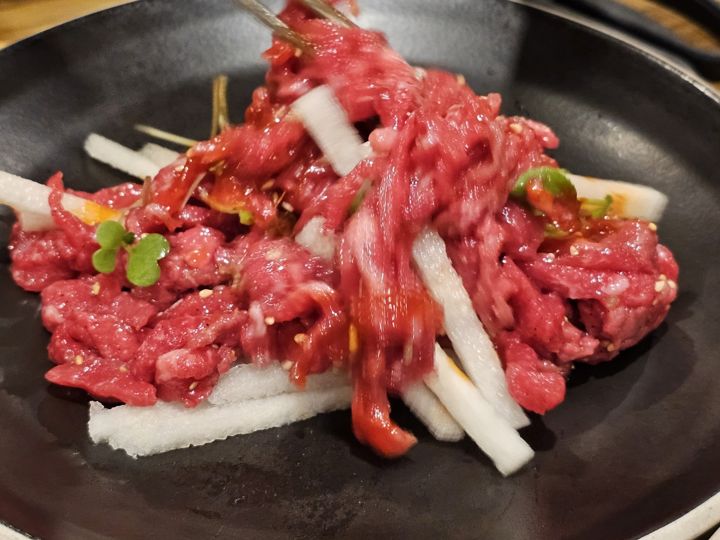 고기 다 먹어갈 때 시킨 한우 육회입니다.